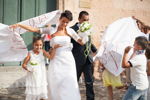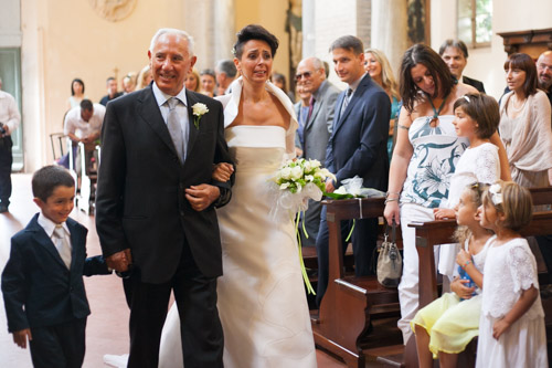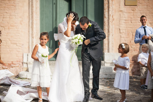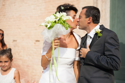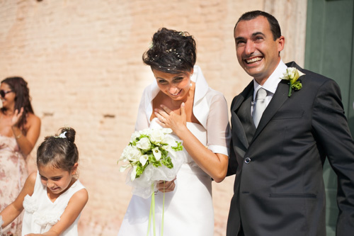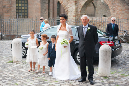 At the end of August 2014, I had the pleasure to fly to Italy for a Destination Wedding in Ravenna, a city located by the Adriatic sea in the Emilia-Romagna region. Silvana + Matteo have been together for more than 20 years, since High School, how great is that?! They finally decided to tie the knot along with their two super cute children. For this important occasion their little girl became the flower girl, while their little boy walked with his mommy and his grandfather to the altar. It was such an emotional moment.