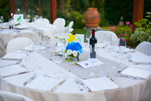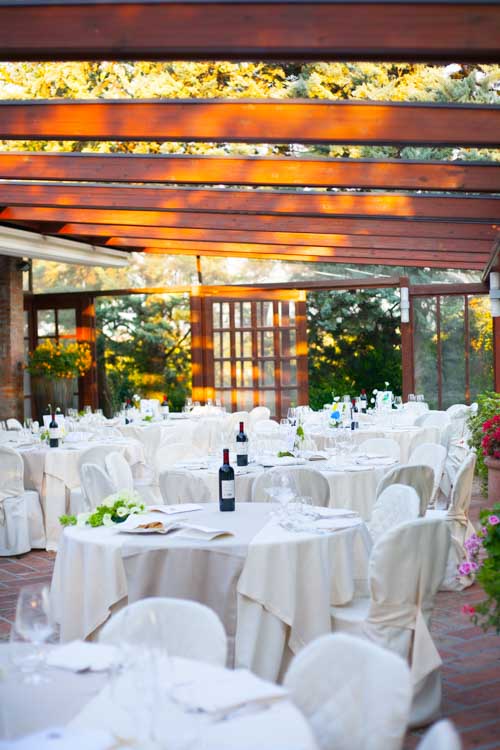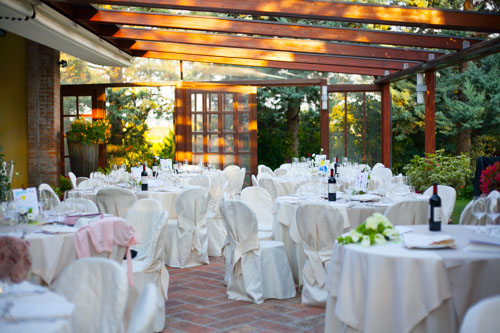 After the ceremony, we drove down to another city called Cesena for Silvana + Matteo’s Wedding Reception. The couple choose a rustic / chic Villa in Cesena called Villa Margherita. The Italian aperitivo was hosted in this Italian Villa’s spacious gardens and the dinner took place in the nearby open veranda. It’s the perfect Italian villa for a romantic and relaxing wedding in the countryside. Not to mention the unbeatable Italian food…