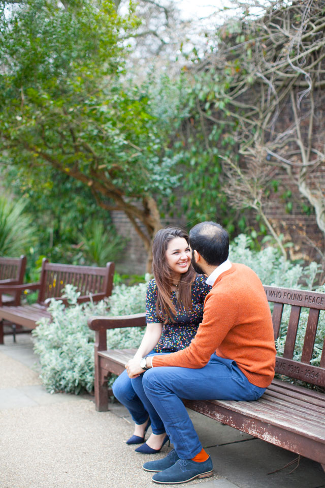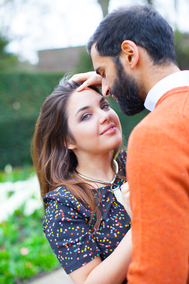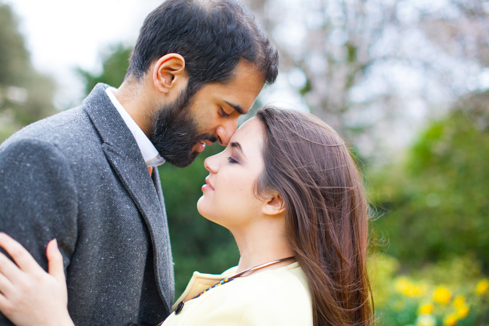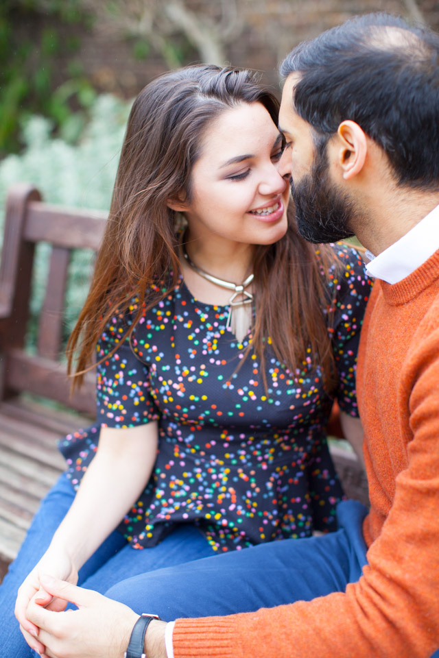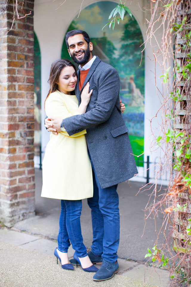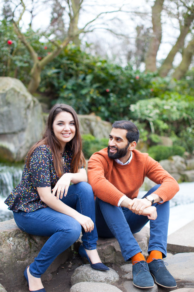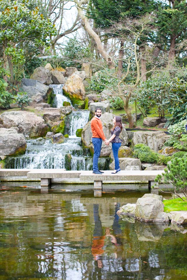 It was an absolute joy for me to photograph Thea and Krushi in the delightful setting of London’s Holland Park. This is definitely one of my favourite London parks. You will love the serene atmosphere of the Kyoto Gardens, as well as the warm welcoming from its squirrels and  peacocks! I thoroughly enjoyed every minute I spent with this gorgeous couple during their engagement session!
