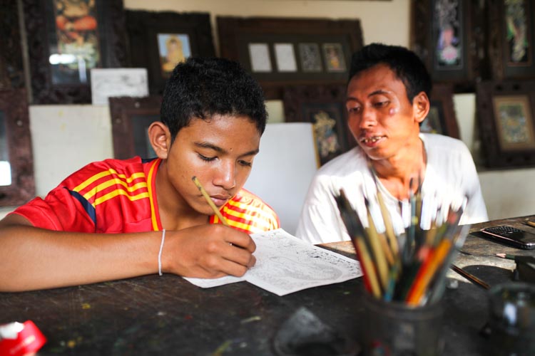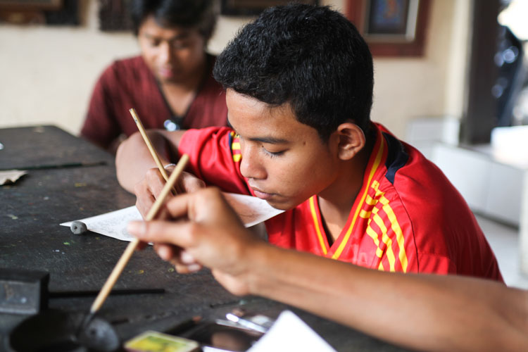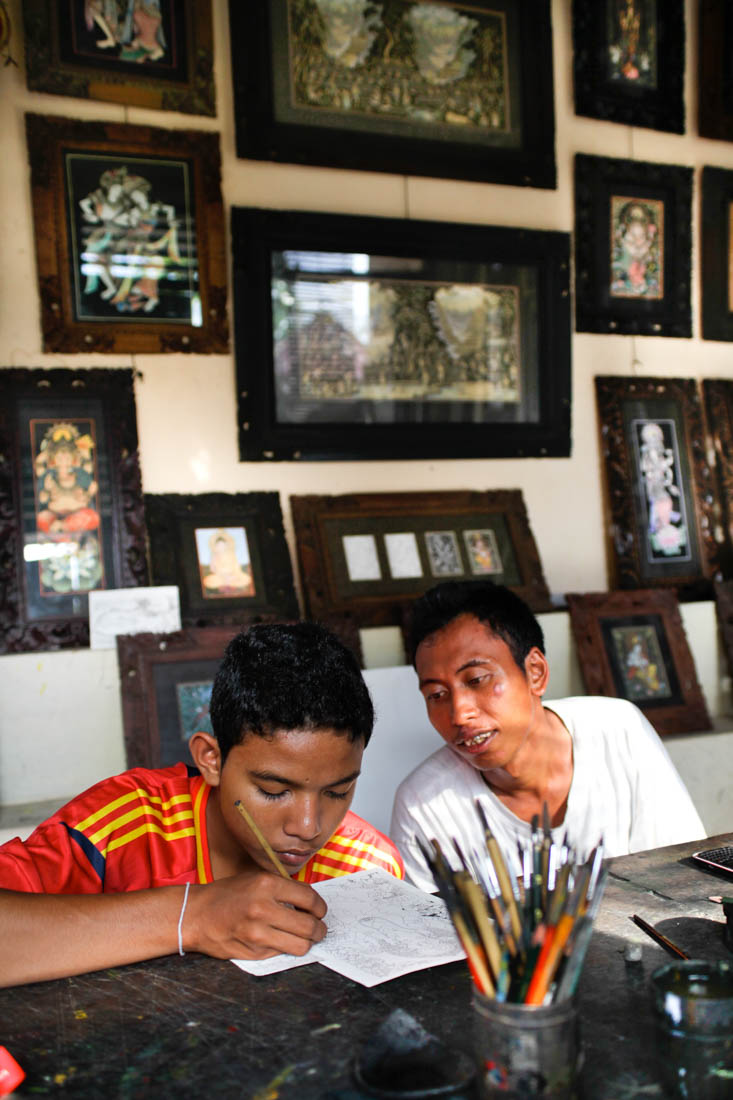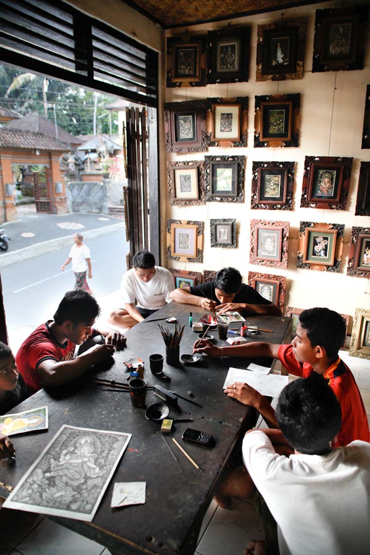 DAY 3 – Scooter trip to the Elephant Cave, Tirta Empul, to the local wood-carver (IWayan Ritug – the sword master of Bali), to Tegalalang rice paddies, to the Pulina Coffee plantation and finally to an amazing  Balinese Painting School called Keliki Painting School.  Finally dinner in Ubud at Dewa Warung.