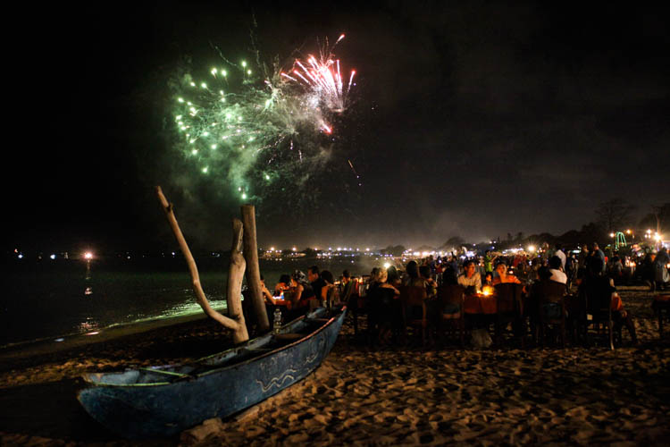 DAY 10Last day: Went back for a scooter ride in the rice paddies, spent a morning in a Balinese Elementary school, had lunch (again) at Clear Cafe before heading first north, to visit Ulun Danu Temple & the Jatiluwih rice terraces, then south to visit Tanah Lot Temple at sunset time. I decided to have my last dinner (again) on the beach in Jimbaran, enjoying the fireworks before heading back to Denpasar’s Airport to catch my late night flight.