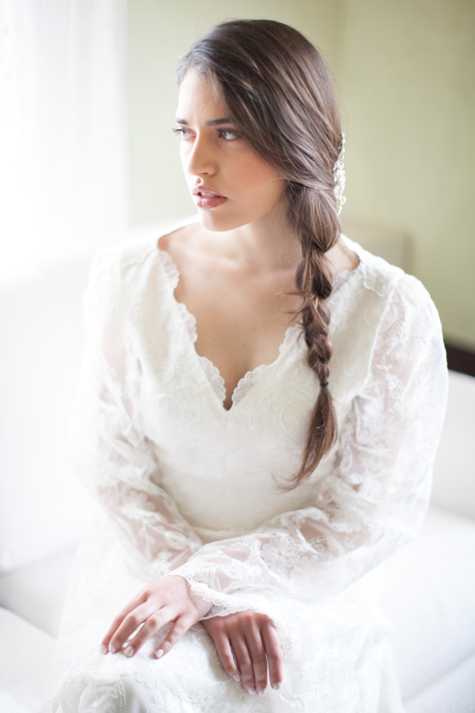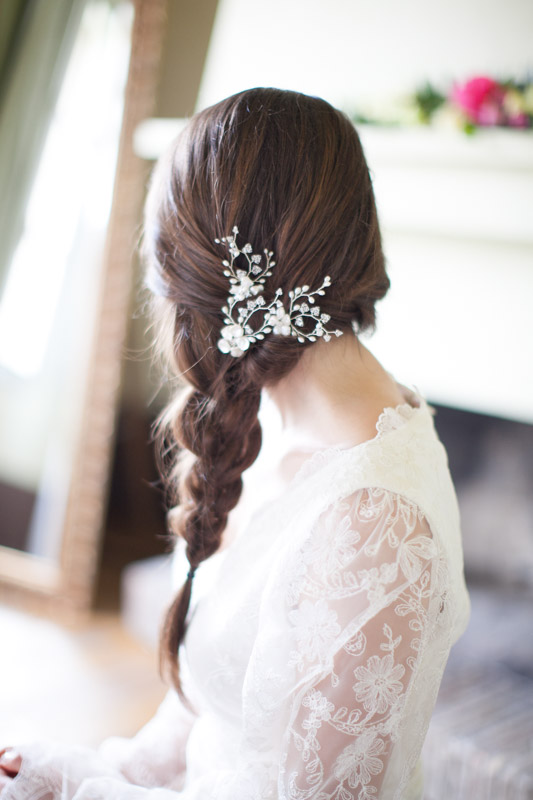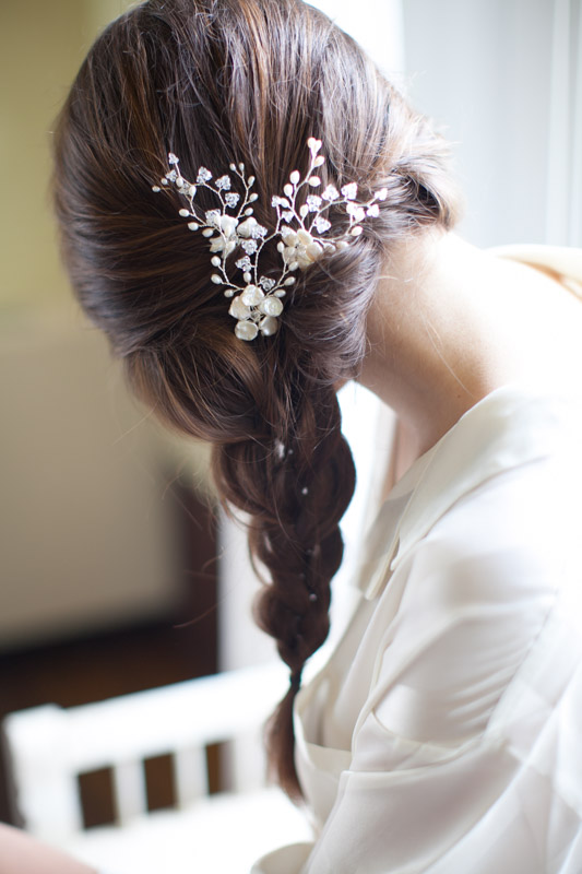 Although I sourced all the suppliers for this shoot in Italy, I couldn’t resist including the truly talented Hermione Harbutt in our number as I adore her work. Hermione suggested her ‘May Blossom Hairpins’ for our shoot and the pearl blooms, surrounded by pearl and Swarovski crystal tendrils, were just what our natural bride needed.