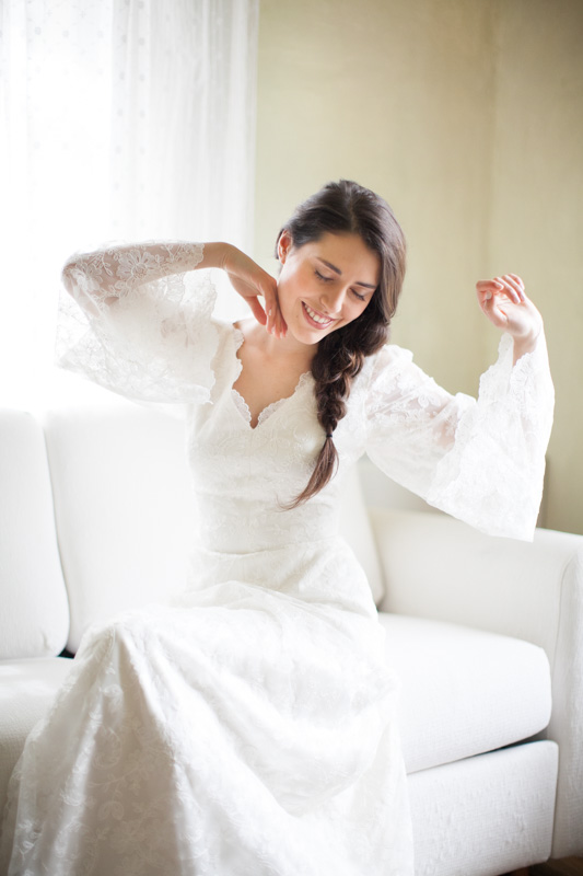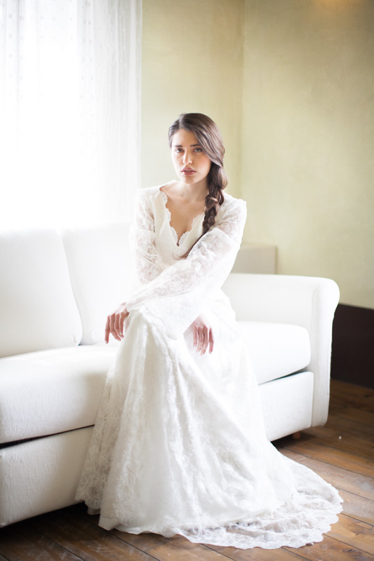 When the time came for our bride to dress, she stepped into the exquisite ‘Priscilla’ gown by Italian designer Marianna Lanzilli. Marianna describes this as a timeless design with a vintage vibe that’s perfect for the bohemian and modern bride. I love those elegant lace sleeves and the gown creates the most amazing silhouette – it’s demure and oh-so appealing all in one. It’s also Made In Italy, which makes me love it that little bit more! :)