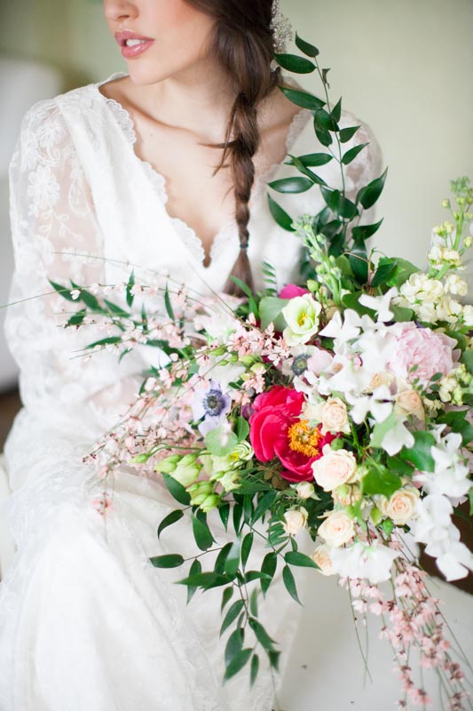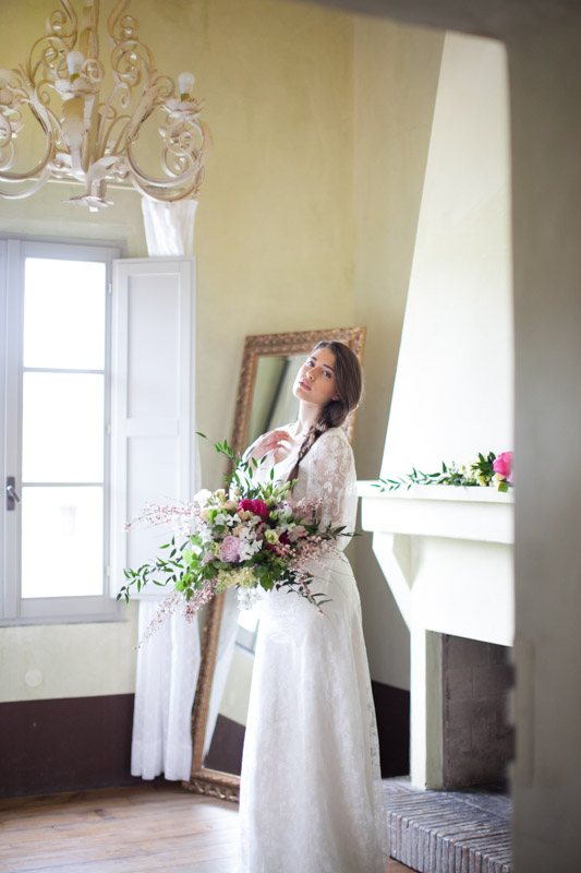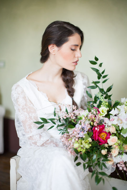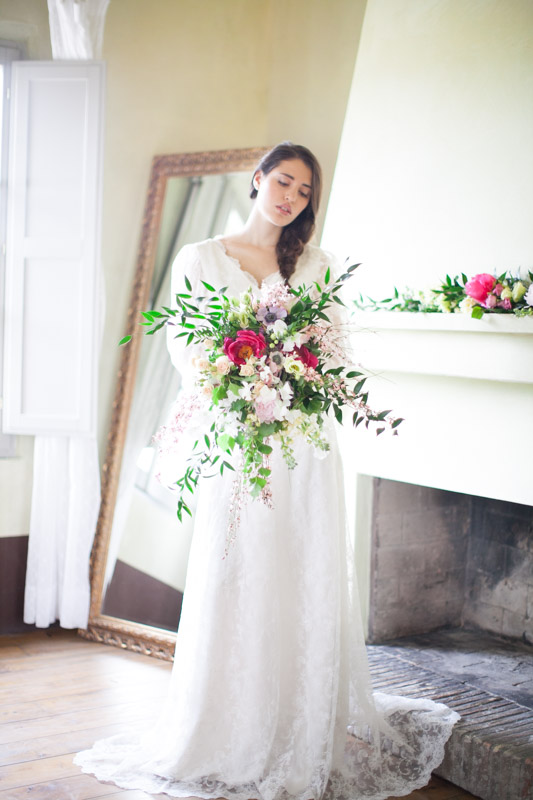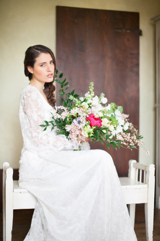 I couldn’t have been happier with our bride’s hair and make-up. It’s so completely perfect for this natural and romantic shoot and the team of Mirko Mazz worked their magic to create a flawless look that’s perfect for an Italian destination wedding. Just as perfect was the bride’s organic, deconstructed bouquet (again, from ISA Events) that featured peonies, sweet peas, pronged roses, lisianthus, the softest pink brooms and strong green leaves. It too couldn’t have been more fitting for such a natural look.