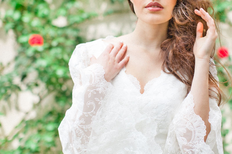 So, let’s imagine that our beautiful bride is making her way from her bridal suite following her preparations to her wedding ceremony. She’s dressed in her fabulous gown by Marianna Lanzilli and is wearing her delicate Hermione Harbutt May Blossom hairpins. The floral and botanical design elements on both are totally in keeping with the location and the organic look of the whole shoot.