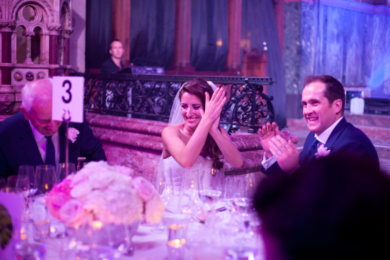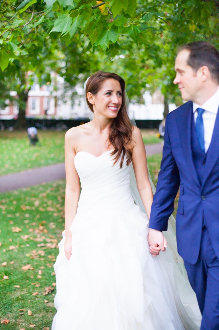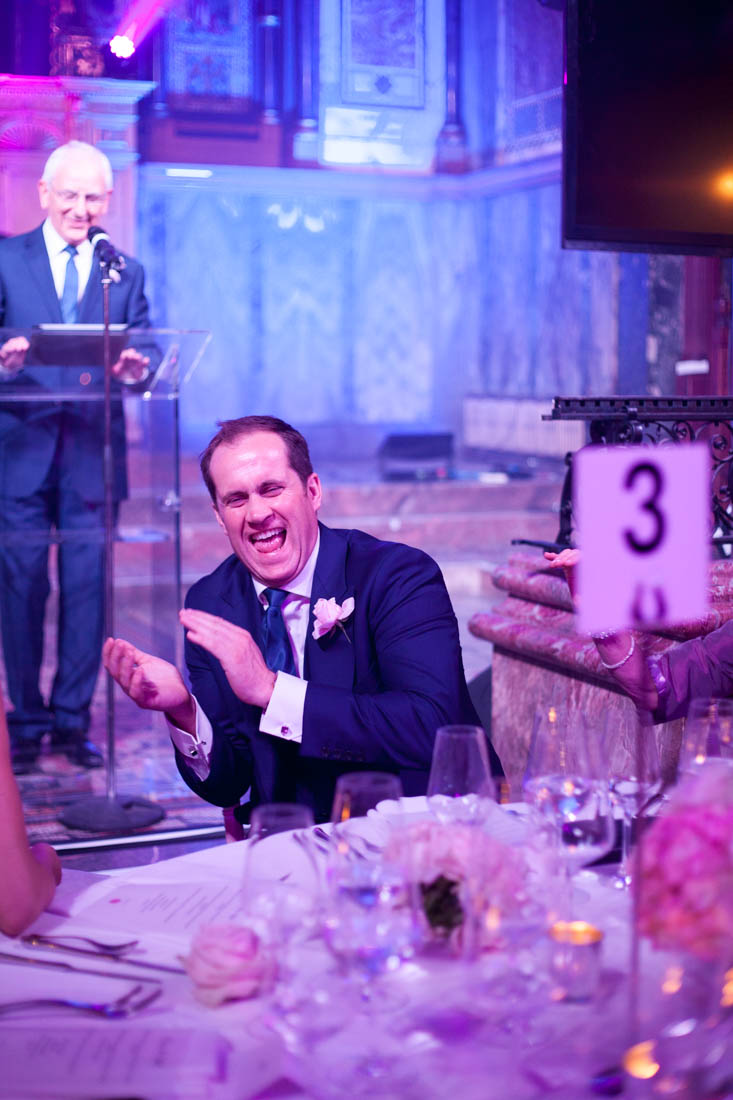 The guests enjoyed some chic canapés and drinks while we walked to the nearby Grosvenor Square Garden for the couple’s natural light portraits. Back to the venue, it was time for the speeches, a delicious dinner and some dancing moves!