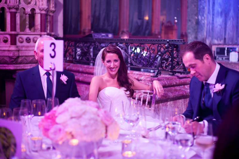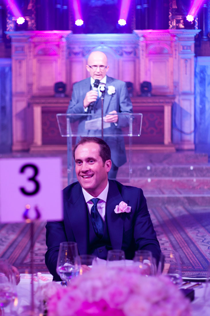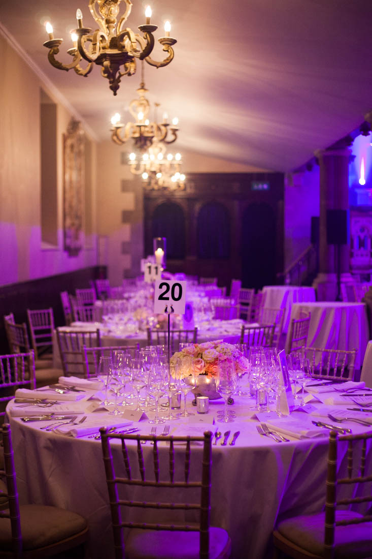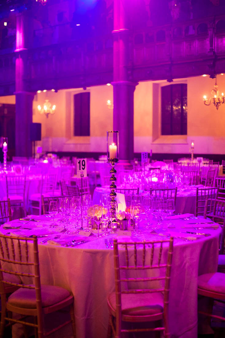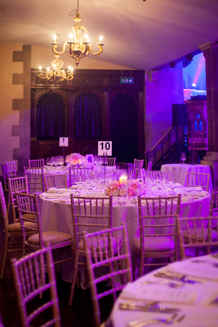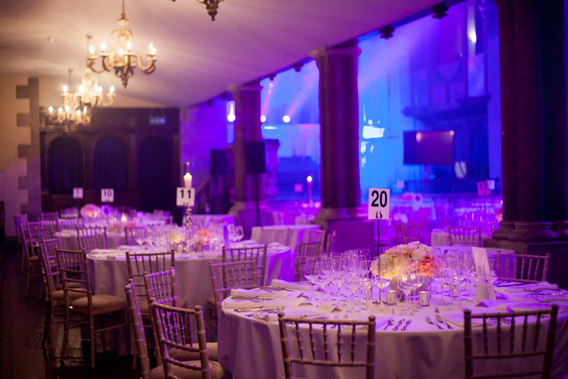 For Emma + Will’s wedding this majestic venue was adorned with candles, golden chandeliers and filled with flowers. The Grand Hall was absolutely spectacular, with sky-high ceilings and a strong pink and blue light. The atmosphere created for this wedding was glamorous and at the same time surreal.