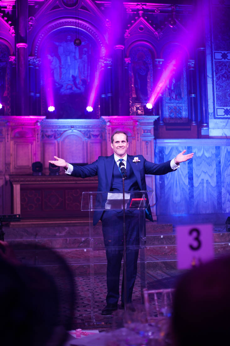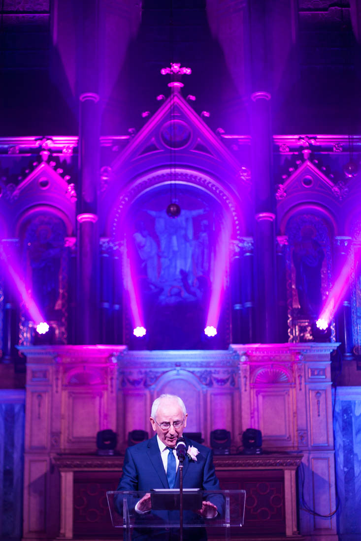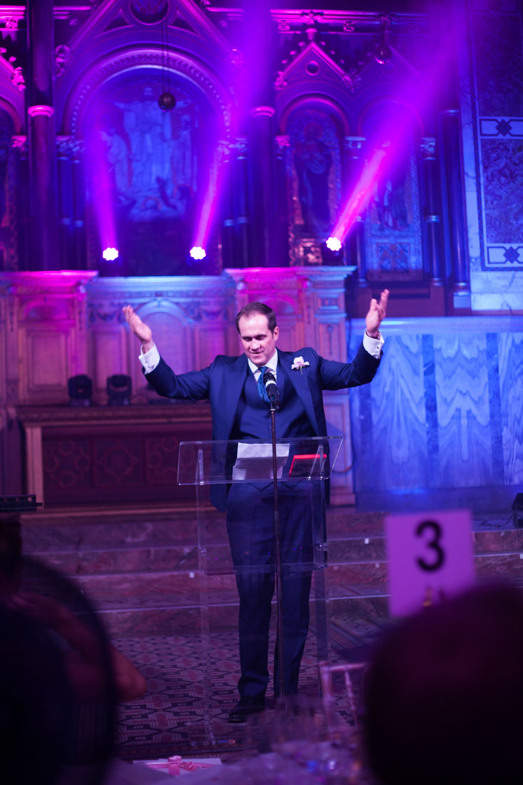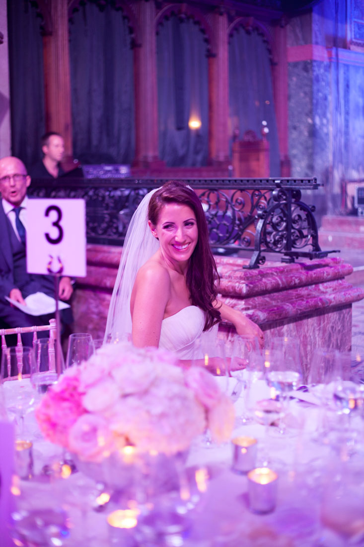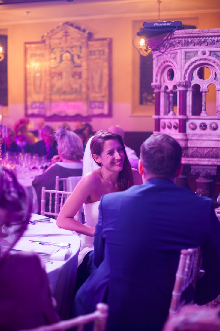 For Emma + Will’s wedding this majestic venue was adorned with candles, golden chandeliers and filled with flowers. The Grand Hall was absolutely spectacular, with sky-high ceilings and a strong pink and blue light. The atmosphere created for this wedding was glamorous and at the same time surreal.