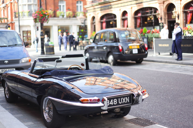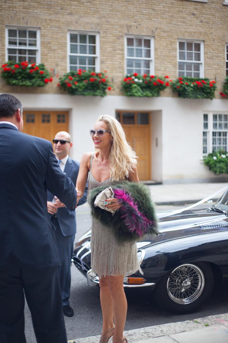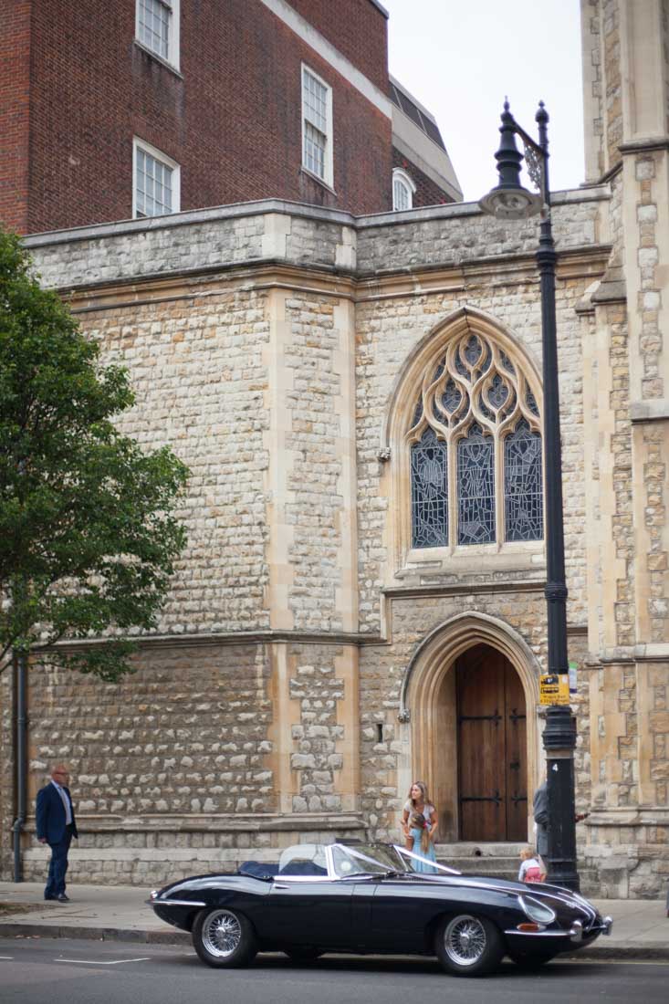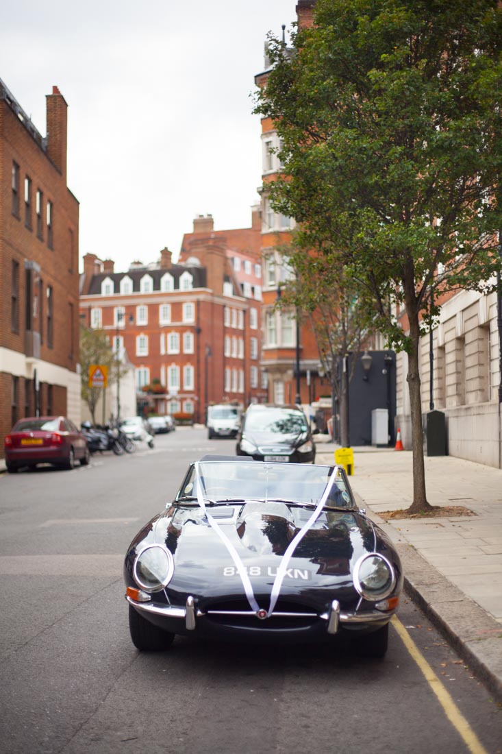 After the ceremony at this splendid church, the guests walked to the spectacular and nearby One Mayfair to attend the wedding reception, while the newlyweds drove off for a ride in the groom’s jaguar e-type convertible.