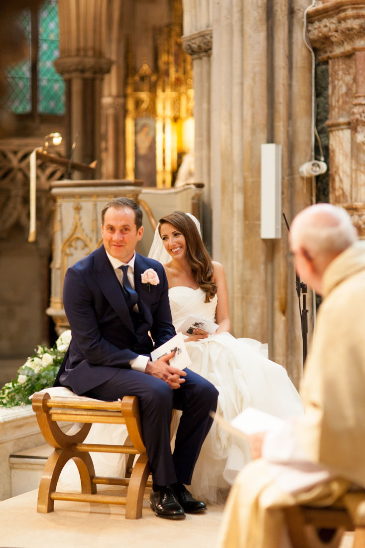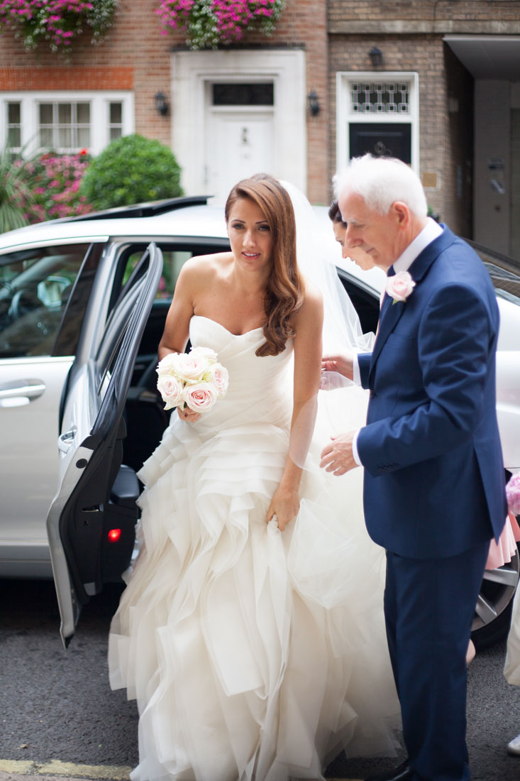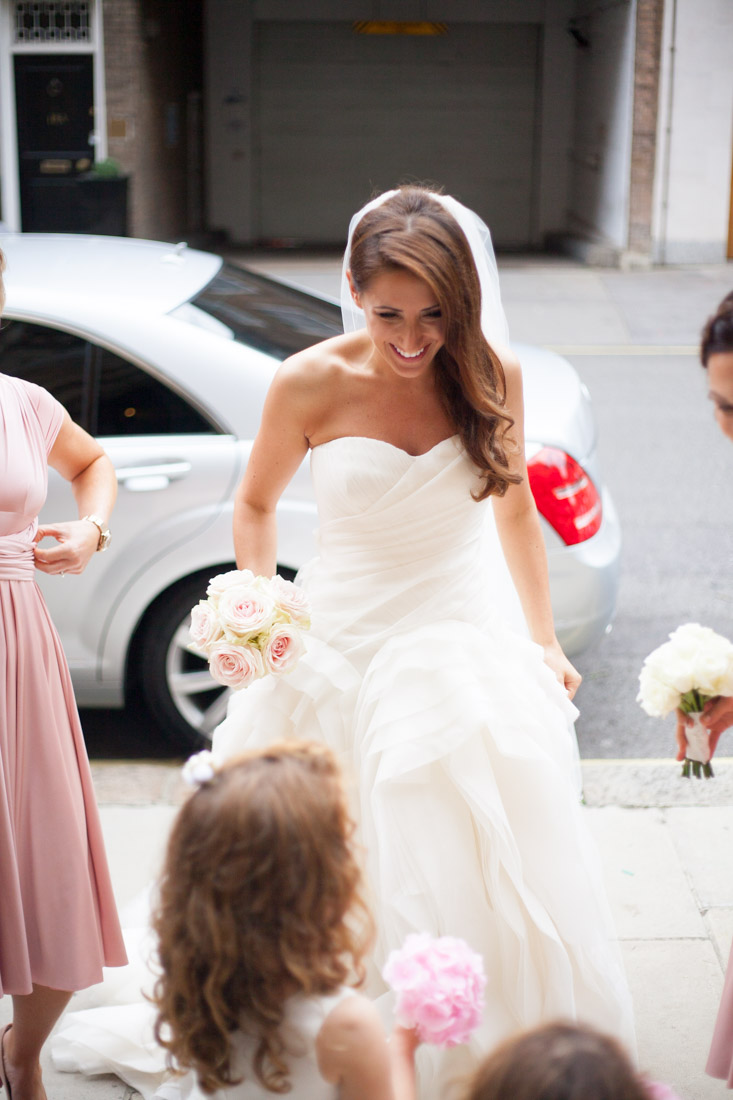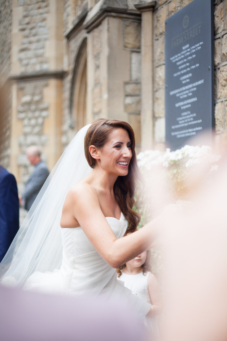 Couple: Emma + Will | Bride’s Dress: Vera Wang | Bride’s Shoes: Louboutin | Church Ceremony: Farm Street Church, Mayfair | Wedding Reception: One Mayfair