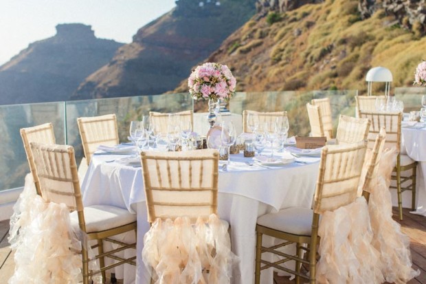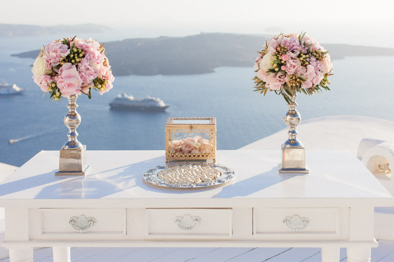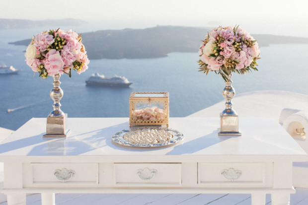 The couple worked with Santorini wedding planners, Stella & Moscha (who are always in demand!) and talented florist Fabio Zardi was commissioned to provide delightful floral arrangements and installations for the ceremony and reception at the Sun Rocks Hotel.