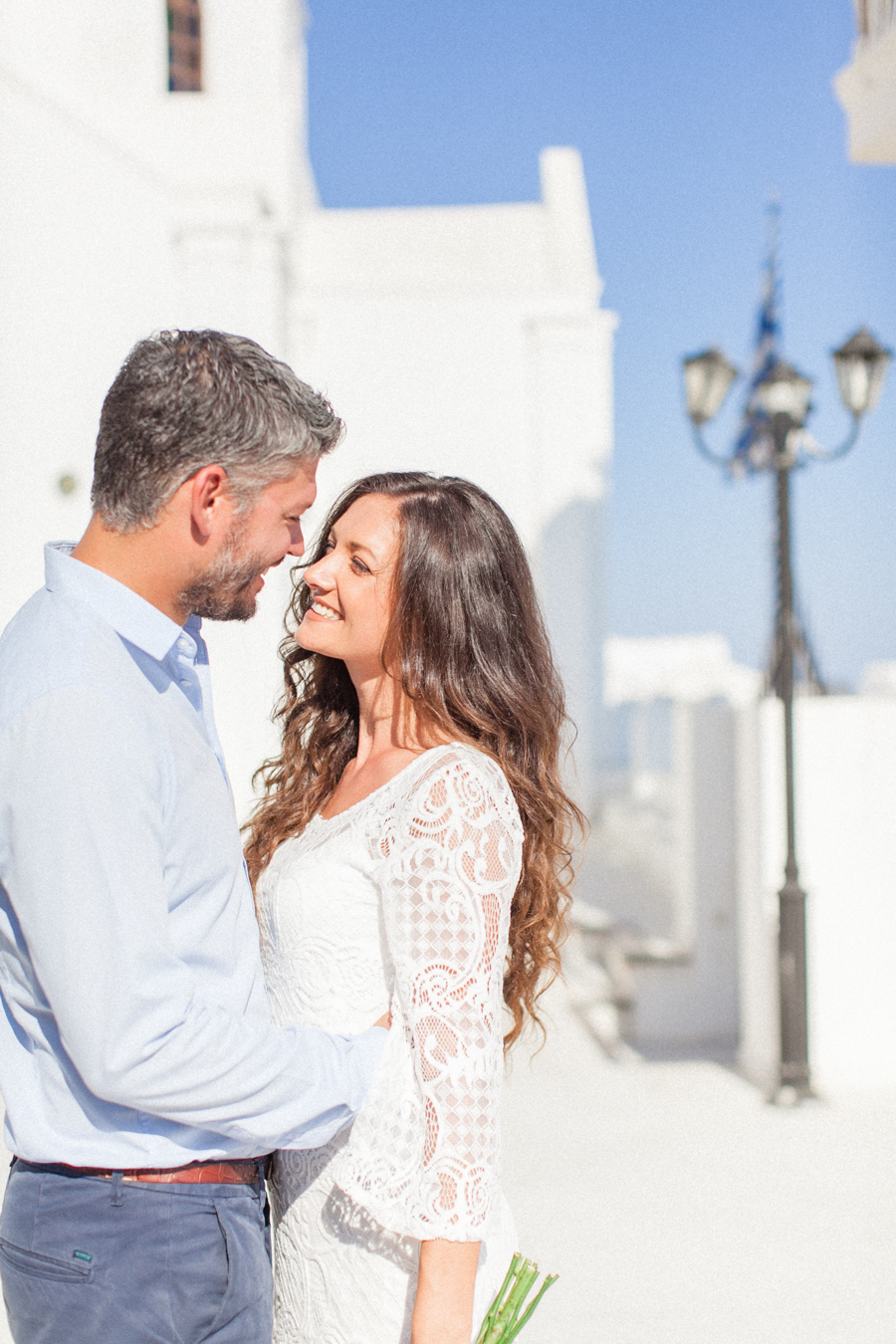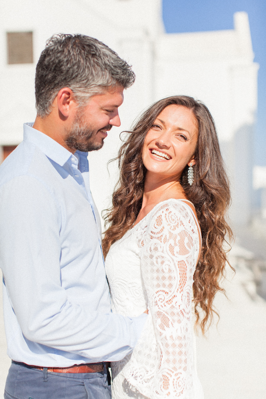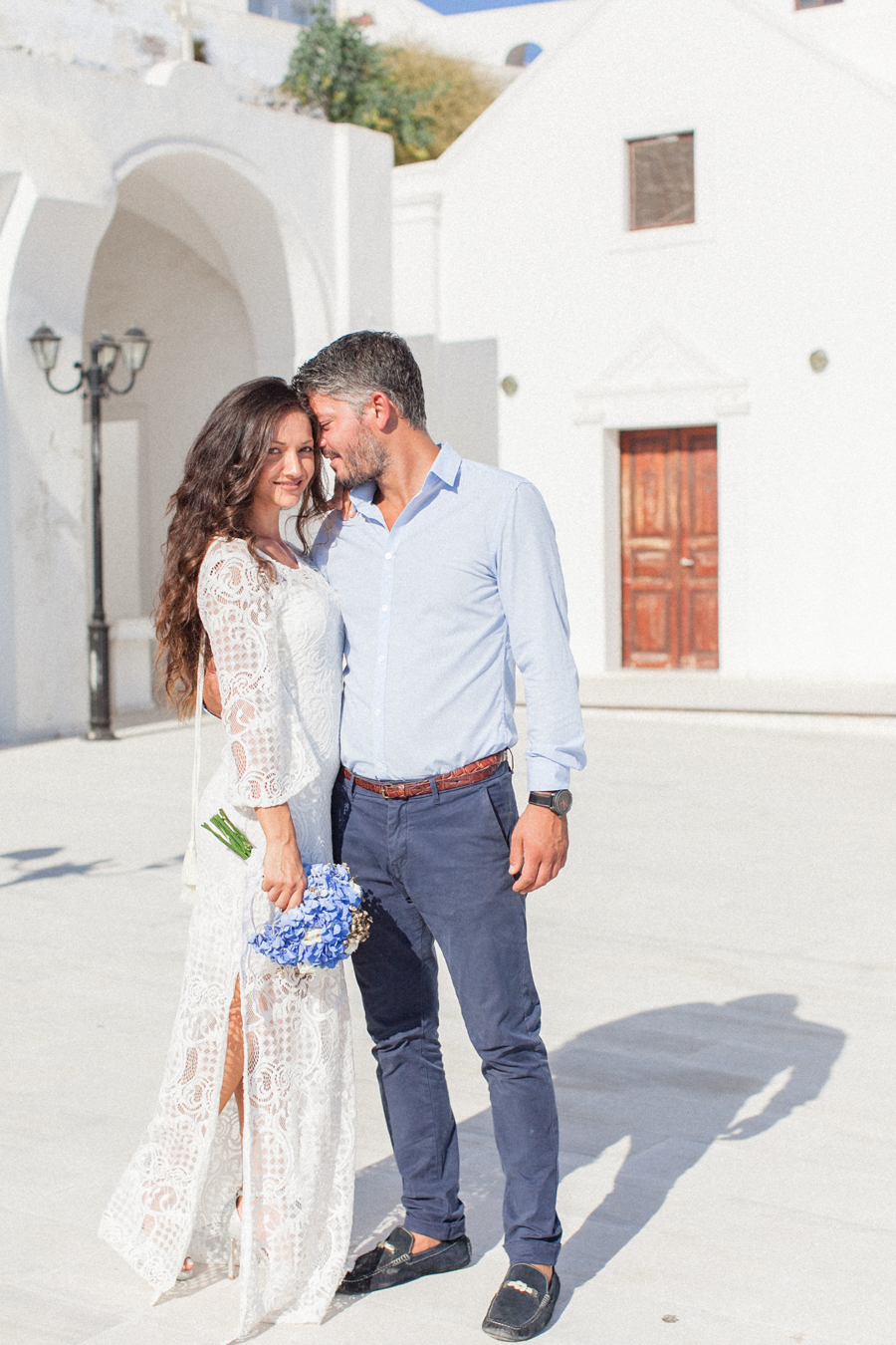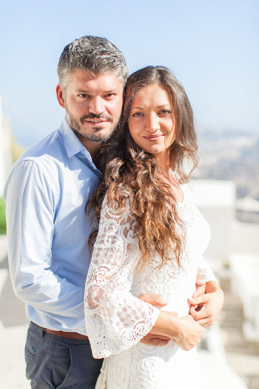 I know I’m not the only one who loves idyllic Santorini and I’m always overjoyed to be asked to photograph weddings, engagements, elopements and even post-wedding sessions in Greece and the Greek Islands. So, when this lovely Greek couple asked me to join them for an afternoon before their wedding day to capture their private and romantic pre-wedding dinner, I couldn’t have been happier.