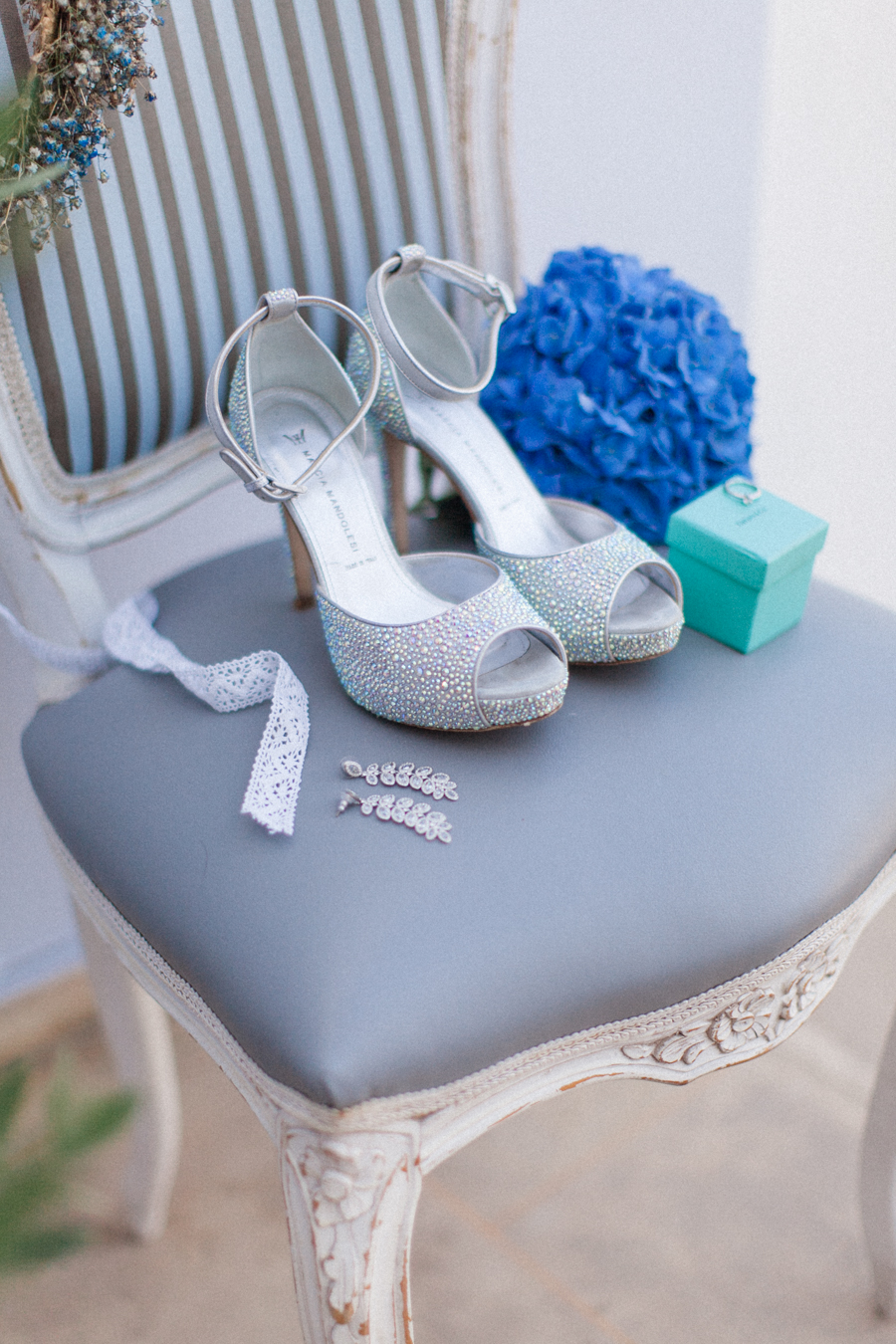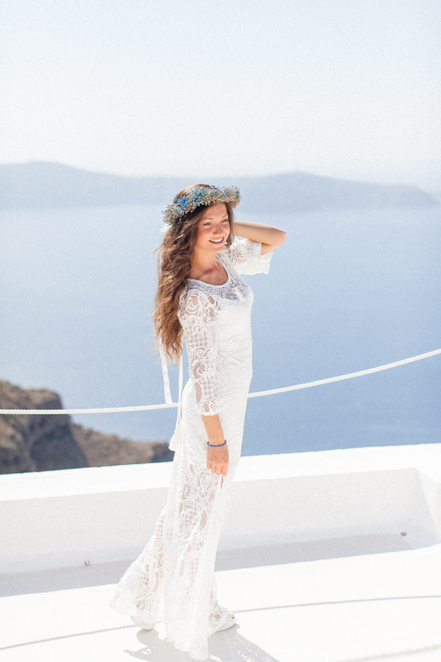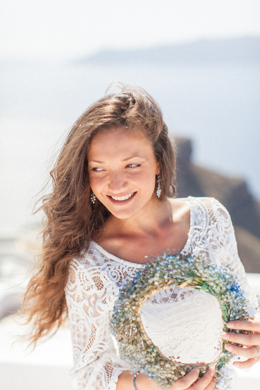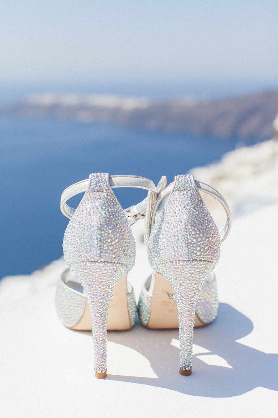 Photography – Roberta Facchini | Design, Planning & Flowers  – Santoweddings by MK | Venue – La Maltese, Santorini, Greece | Stationery – Augusta Cole | Bride’s Dress – BSB by Blue Santorini | Bride’s Shoes – Mascia Mandolesi | Ring – Tiffany | Earrings – Swarovski | Cake – Petranart