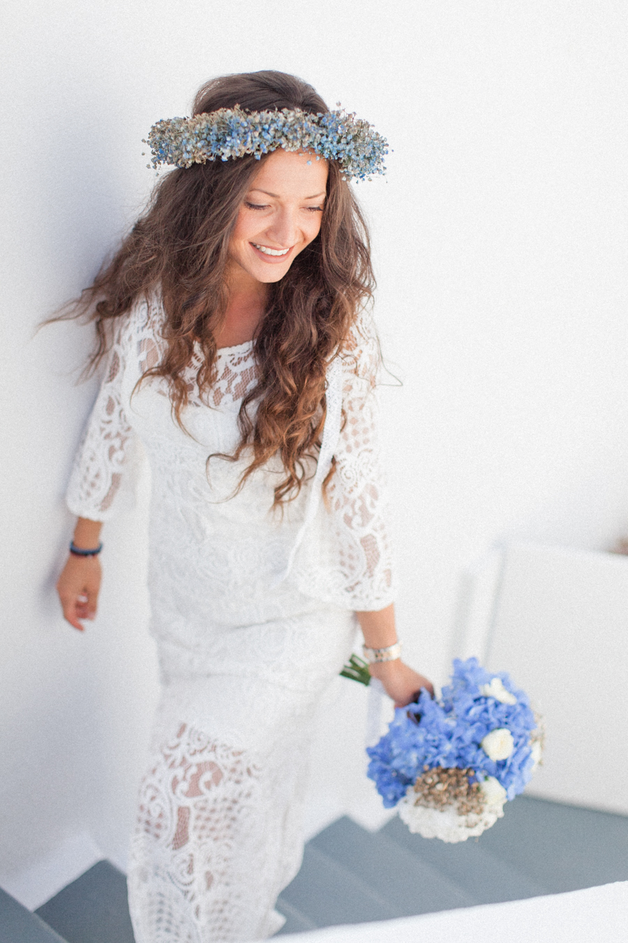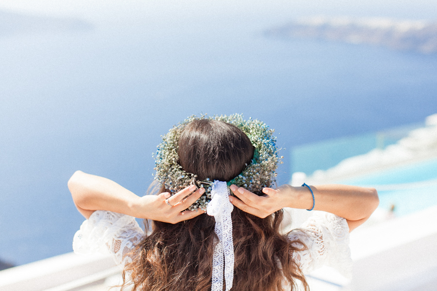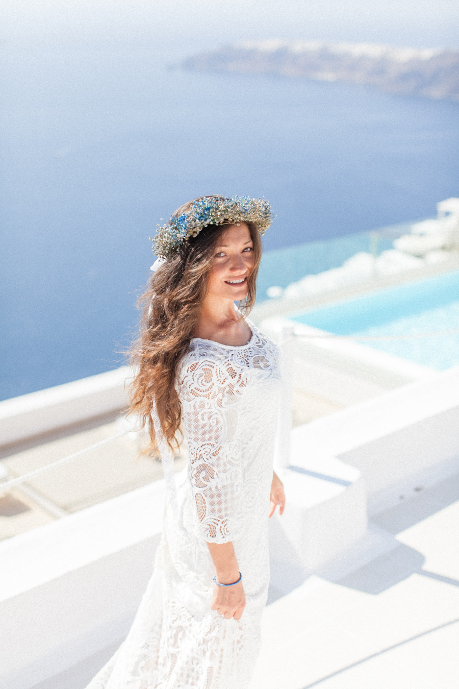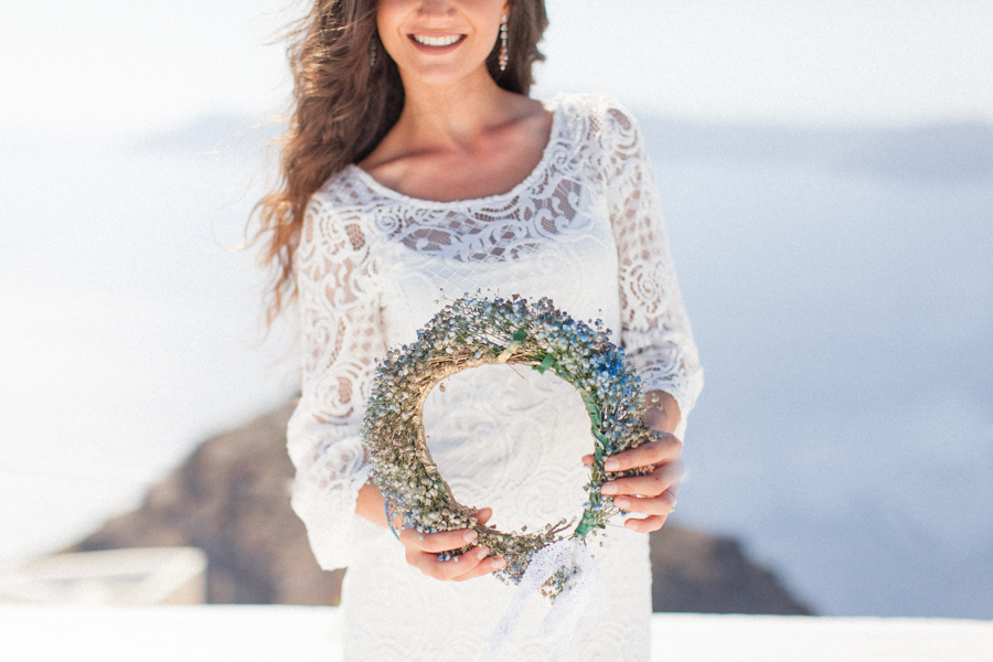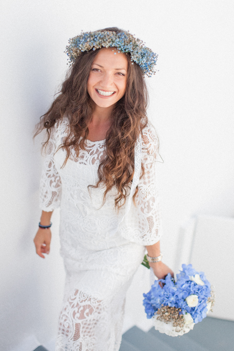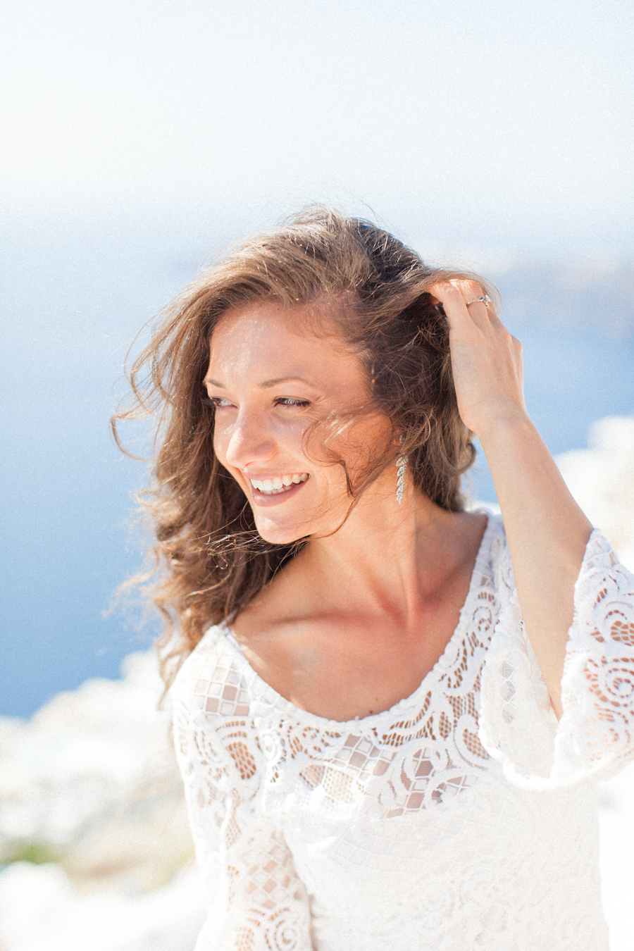 Photography – Roberta Facchini | Design, Planning & Flowers  – Santoweddings by MK | Venue – La Maltese, Santorini, Greece | Stationery – Augusta Cole | Bride’s Dress – BSB by Blue Santorini | Bride’s Shoes – Mascia Mandolesi | Ring – Tiffany | Earrings – Swarovski | Cake – Petranart