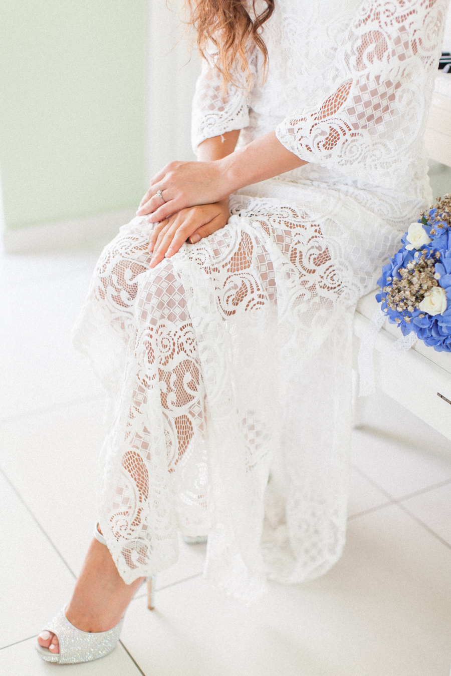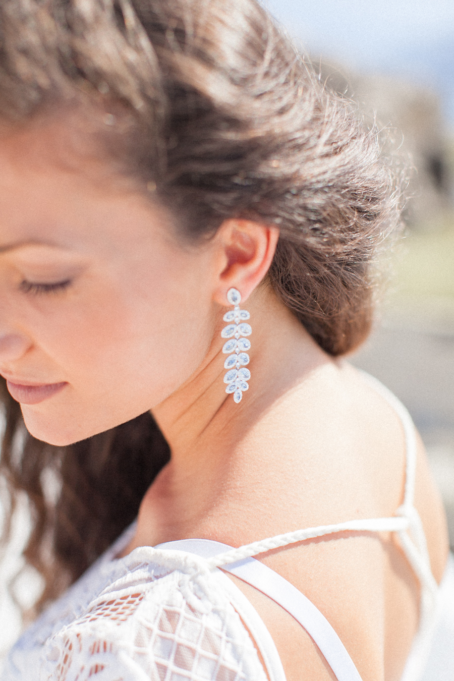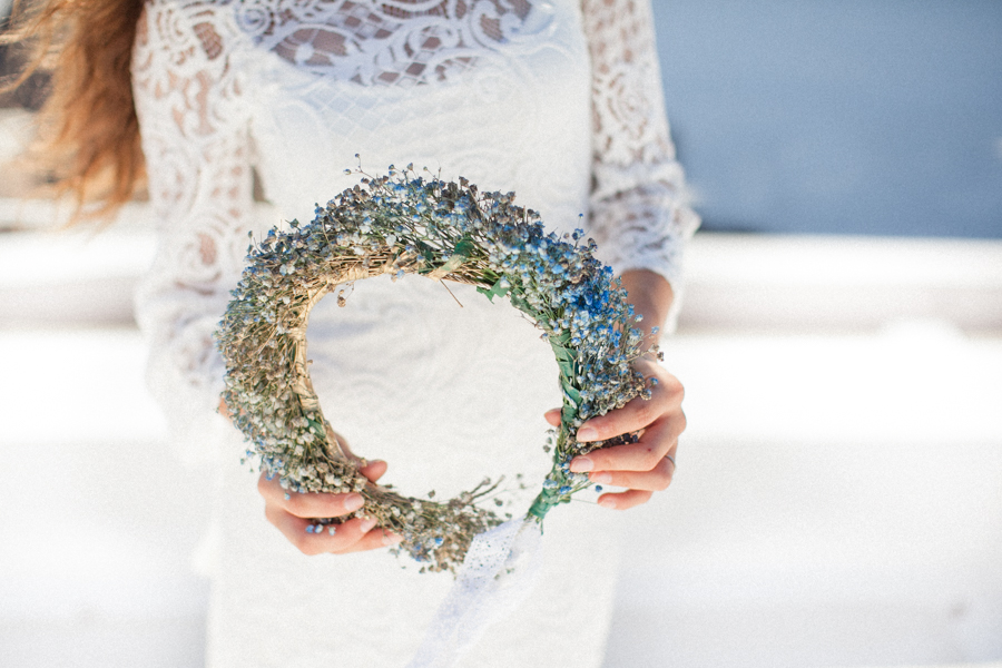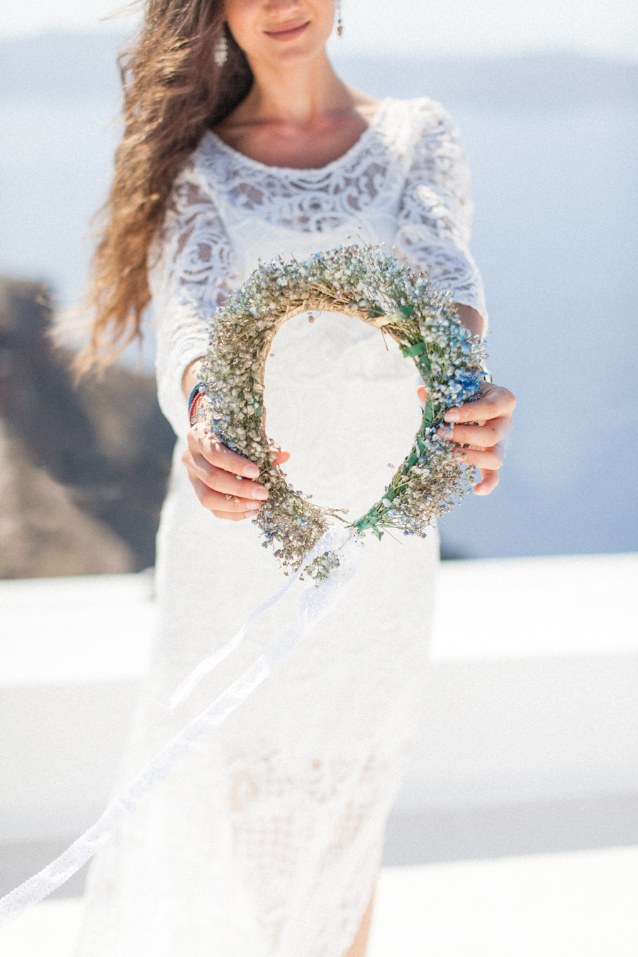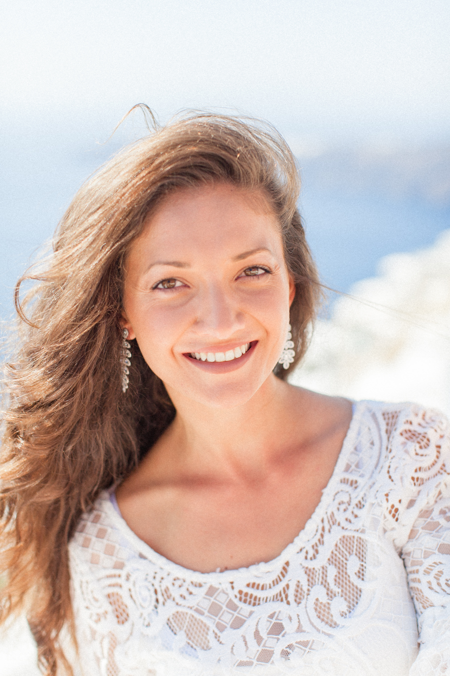 Photography – Roberta Facchini | Design, Planning & Flowers  – Santoweddings by MK | Venue – La Maltese, Santorini, Greece | Stationery – Augusta Cole | Bride’s Dress – BSB by Blue Santorini | Bride’s Shoes – Mascia Mandolesi | Ring – Tiffany | Earrings – Swarovski | Cake – Petranart