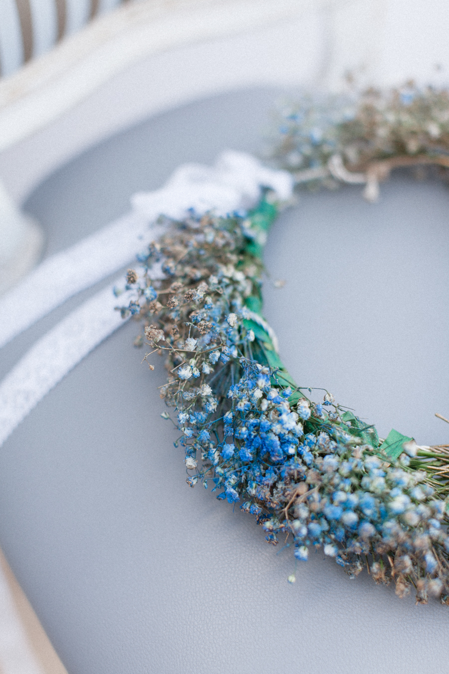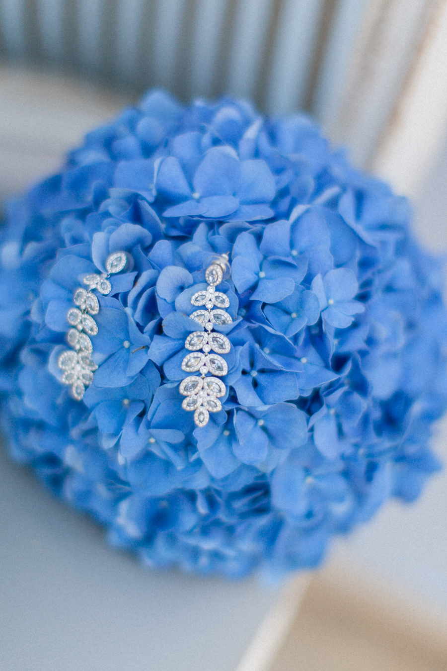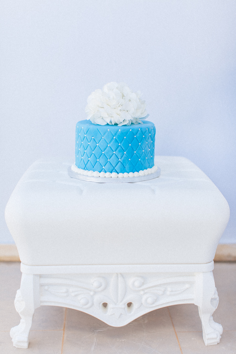 The blue and theme continues to the heavenly cake made for the couple by Santorini wedding cake maker Petranart. This single layer cake with striking blue icing and a classic design was finished to perfection with a crisp white hydrangea. Single layer cakes are so on trend at the moment and they’re perfect for smaller, intimate weddings.