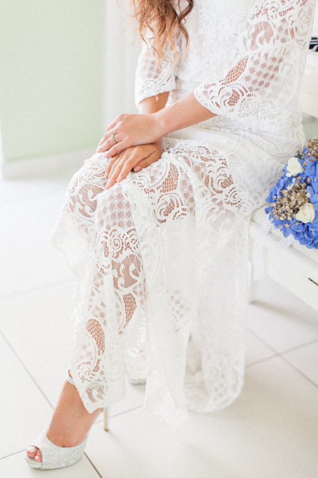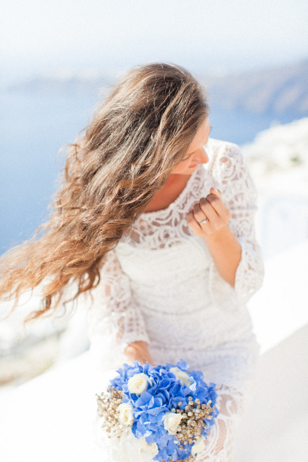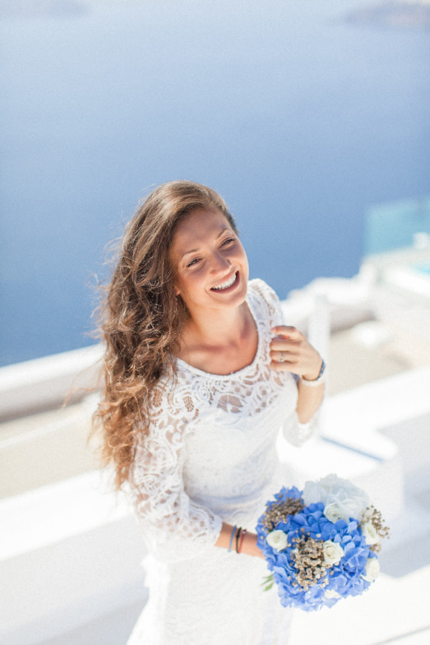 Photography – Roberta Facchini | Design, Planning & Flowers – Santoweddings by MK | Venue – La Maltese, Santorini, Greece | Stationery – Augusta Cole | Bride’s Dress – BSB by Blue Santorini | Bride’s Shoes – Mascia Mandolesi | Ring – Tiffany | Earrings – Swarovski | Cake – Petranart