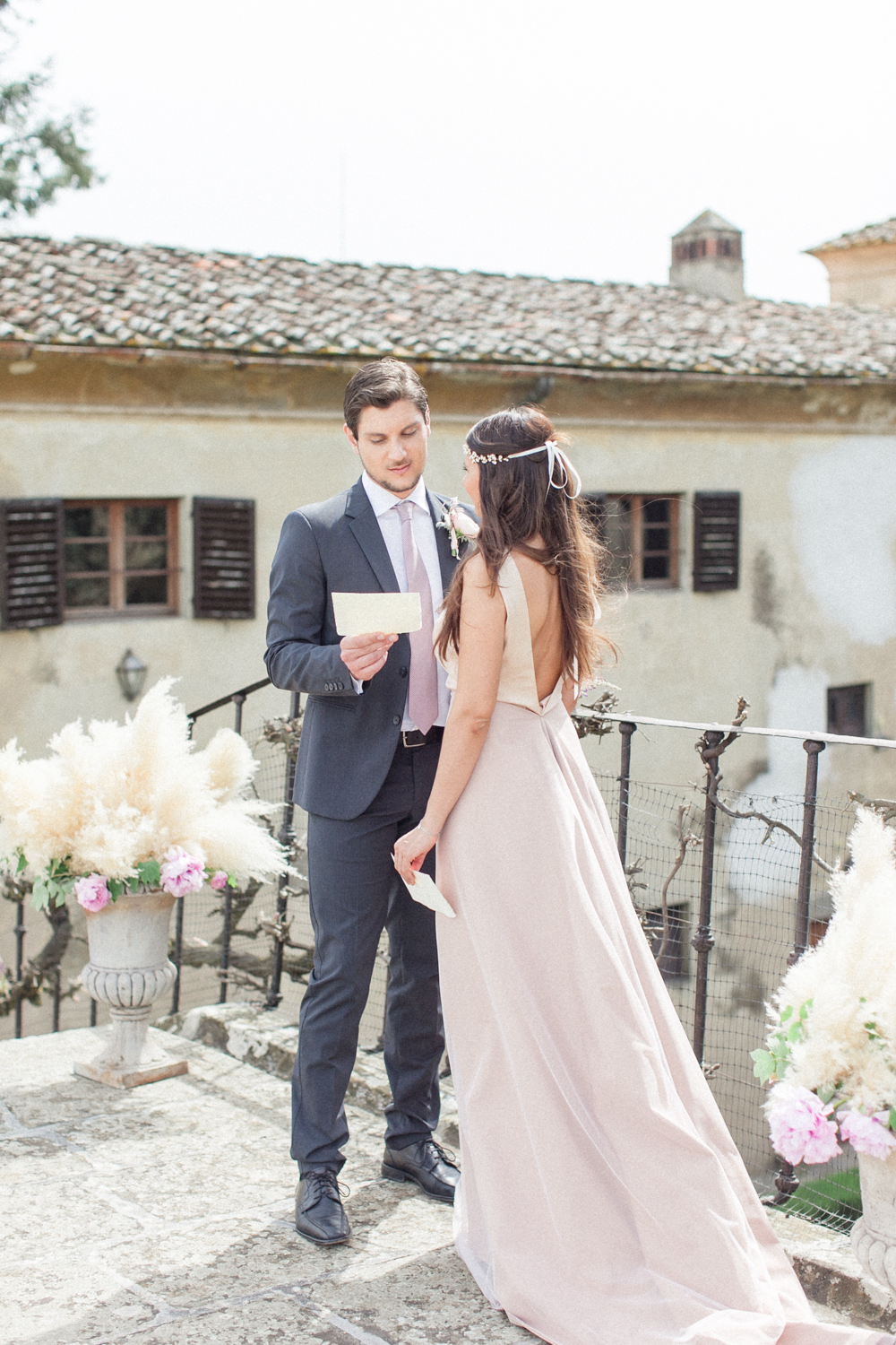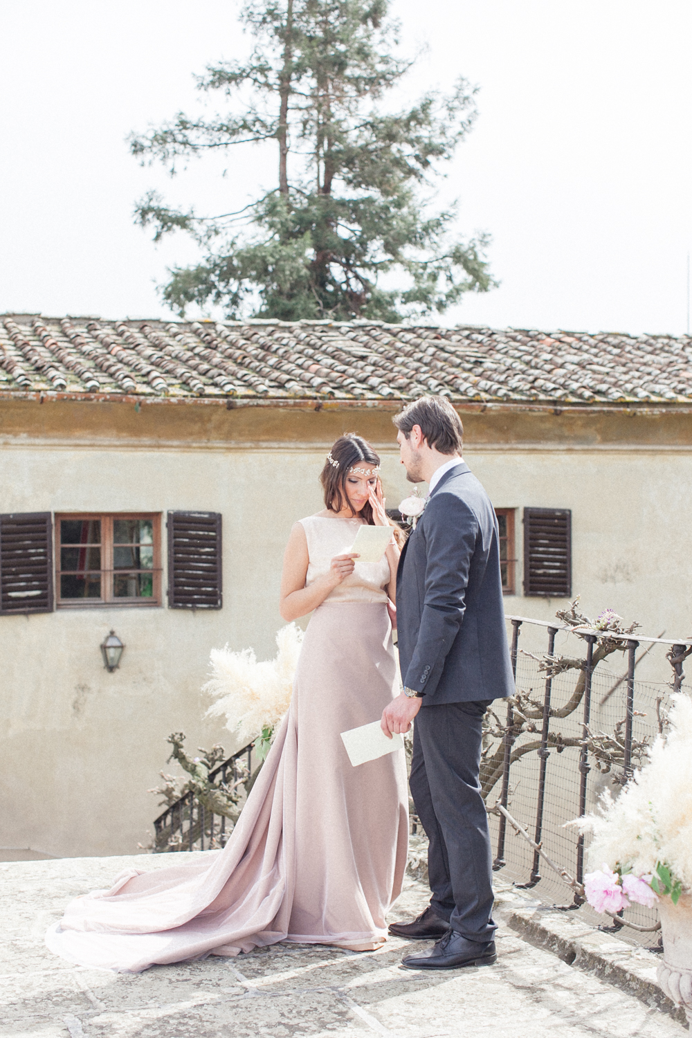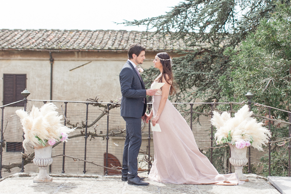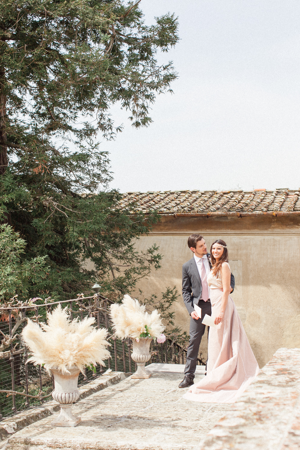 Following the portraits, we adjourned to the terrace and here Mark and Lucy held their own vow exchange ceremony. I was honoured to witness this and share such an important moment with this fabulous couple. To celebrate the vow exchange, we held a private aperitivo and lunch on the terrace with views stretching on to Florence.