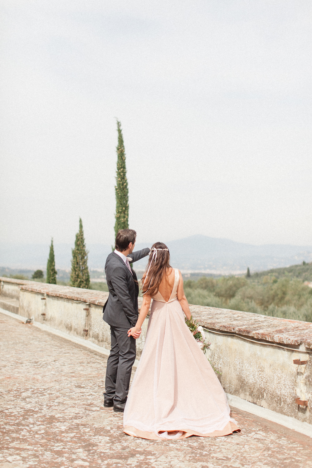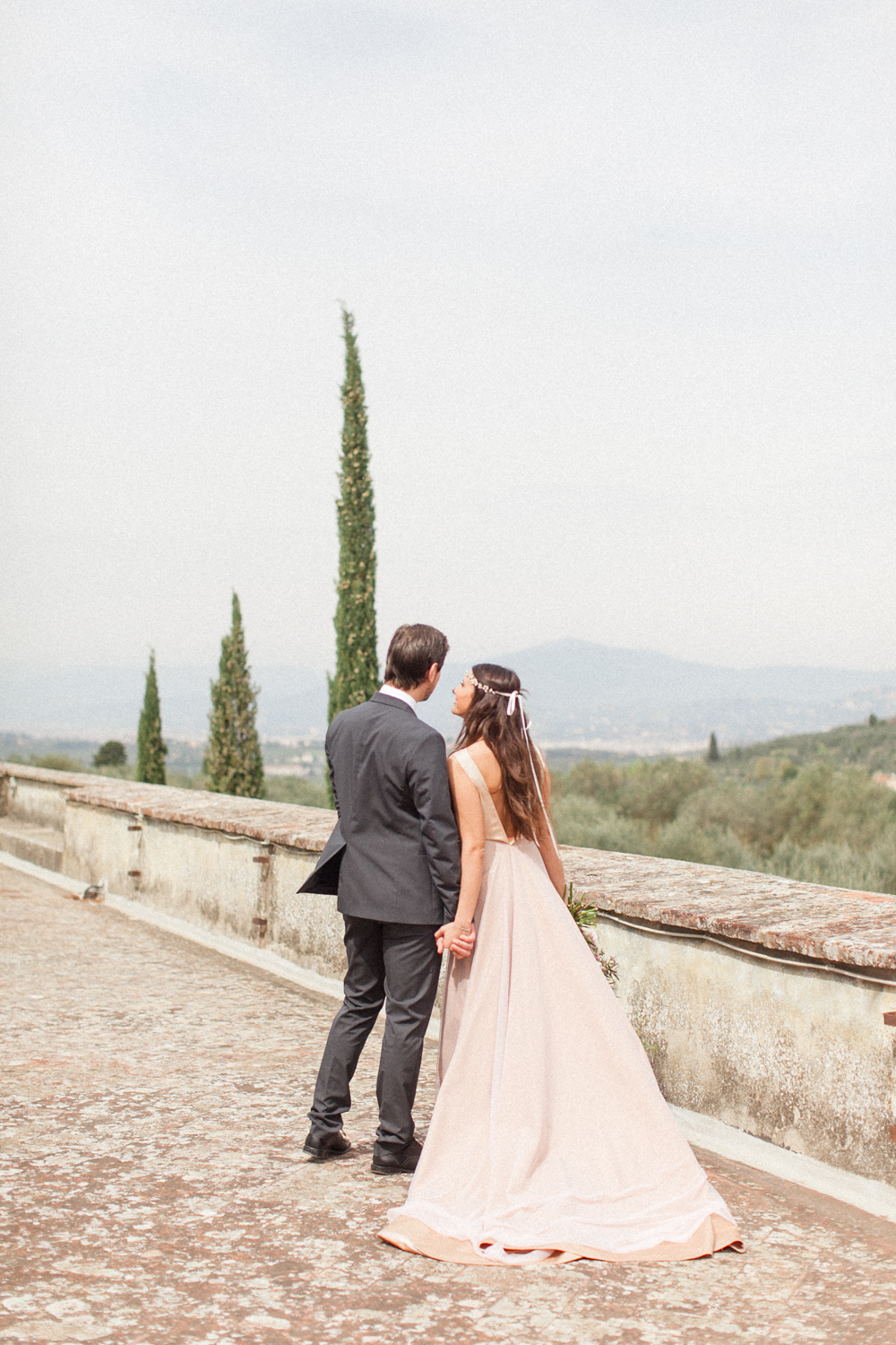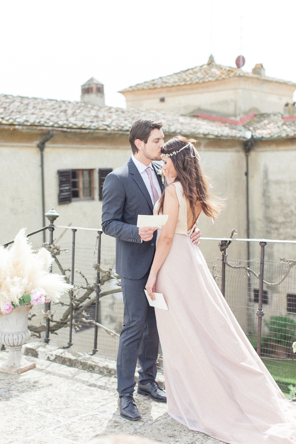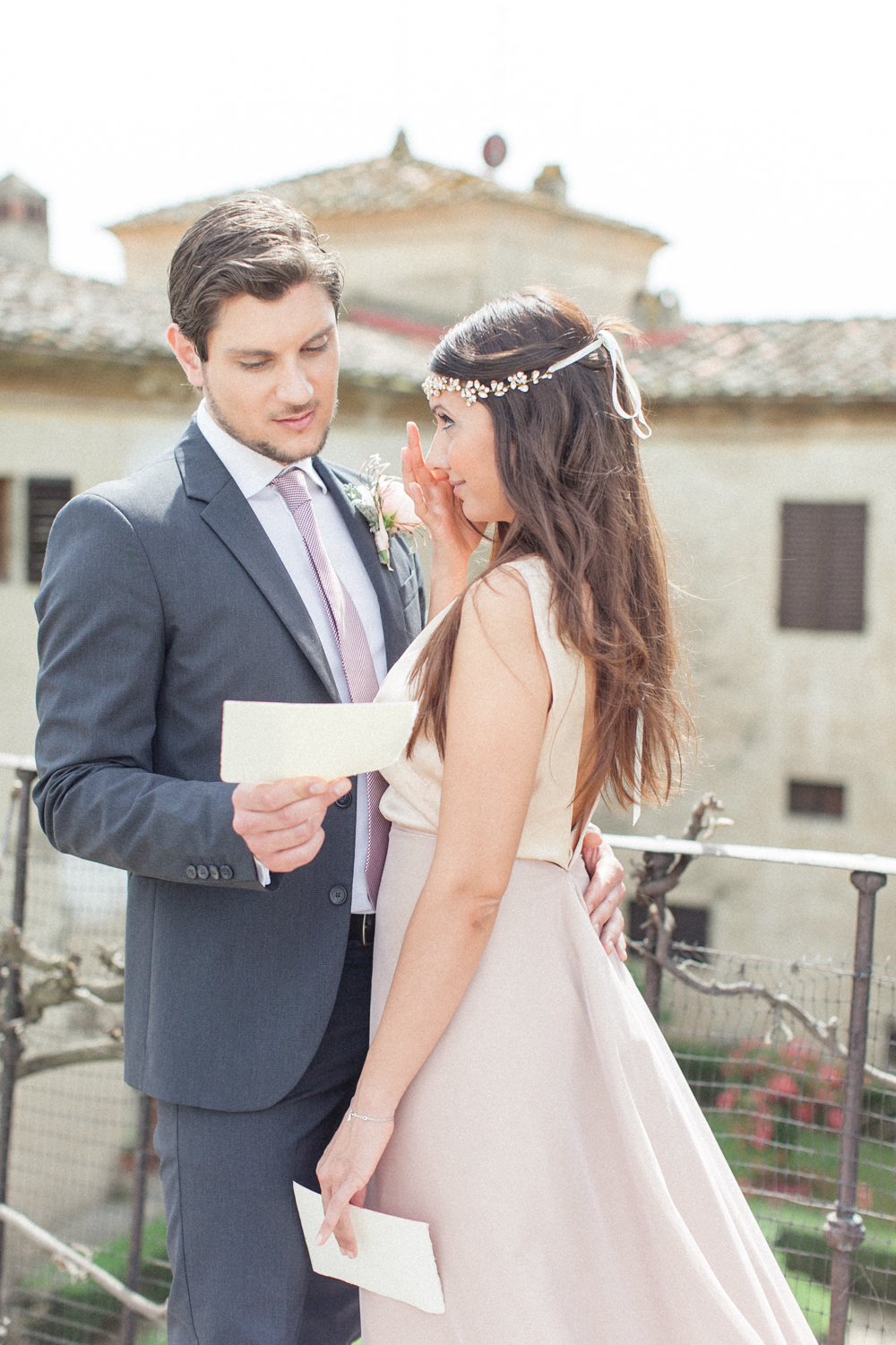 Following the portraits, we adjourned to the terrace and here Mark and Lucy held their own vow exchange ceremony. I was honoured to witness this and share such an important moment with this fabulous couple. To celebrate the vow exchange, we held a private aperitivo and lunch on the terrace with views stretching on to Florence.