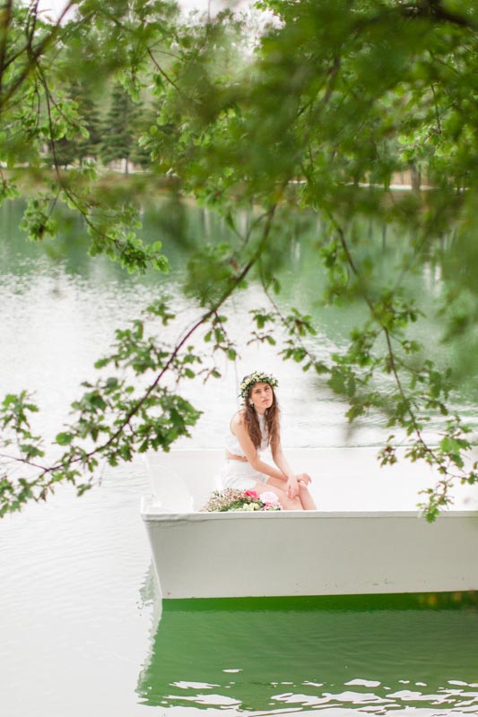 Our gorgeous bride has already explored part of the wonderful Urbino Resort as she wandered through the grounds and gardens in this shoot’s second feature, and now she heads out onto the gently rippling waters of the resort’s private lake making her way to the feast beyond.