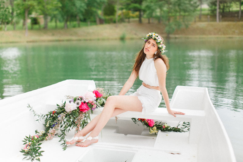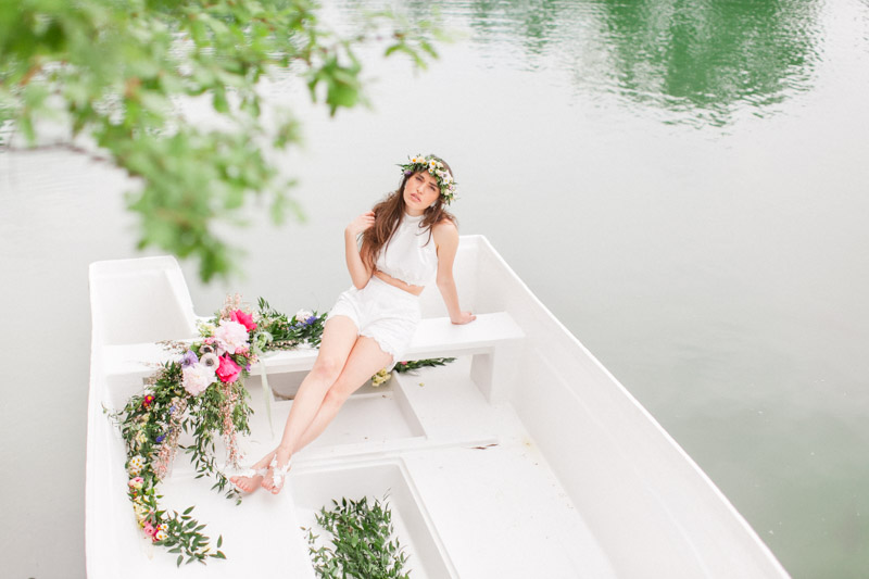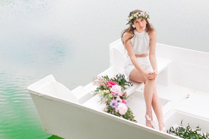 The flowers in the boat are elegant and luxurious but still absolutely natural. Those big, exuberant peonies and eye-catching anemones combine wonderfully with the natural greenery. ISA Events created all the flowers for this shoot and I couldn’t have been happier with the organic designs and beautiful blooms.