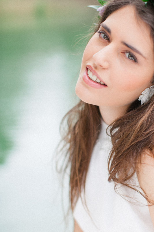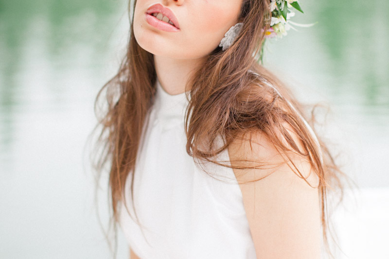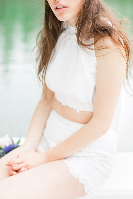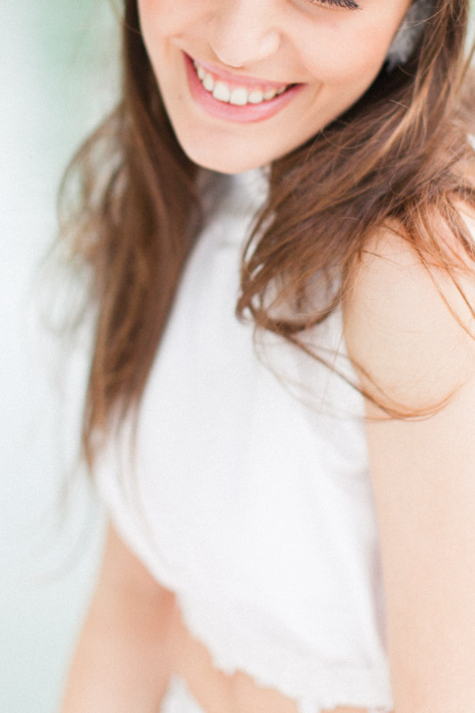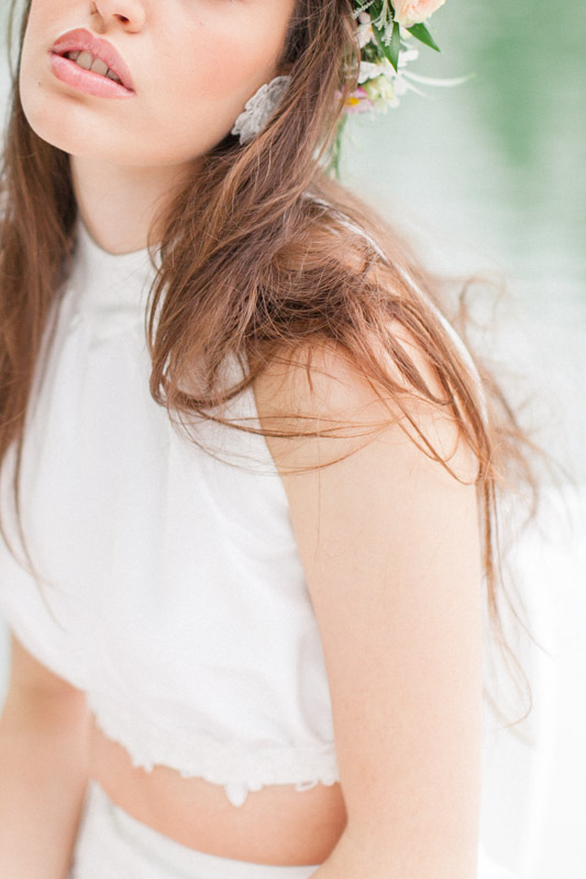 I think that it would be perfect for a destination wedding – imagine wearing this for your reception in more tropical climes or changing to dance the night away under the stars in these fantastic bridal separates? I love it! Her light, natural make-up by Mirko Mazz is also perfect for a destination wedding.