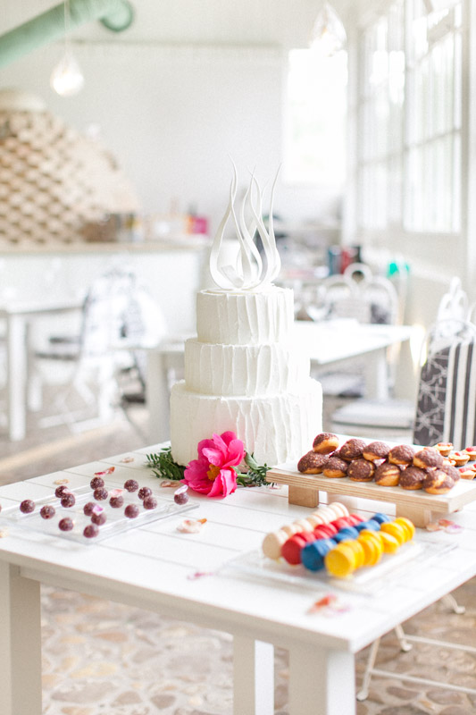 Moving into the light, bright restaurant for sweet treats and desserts, our bride’s journey has finally come to an end. The tables are exquisitely decorated with muscari, lisianthus, roses and alstroemeria (again from ISA Events) and the relaxed, welcoming atmosphere of this delightful restaurant gives our beautiful bride the chance to relax and enjoy the macarons, pates de fruit, beignets, tartelette as well as the spectacular wedding cake, all prepared by the team at the fabulous Urbino Resort.